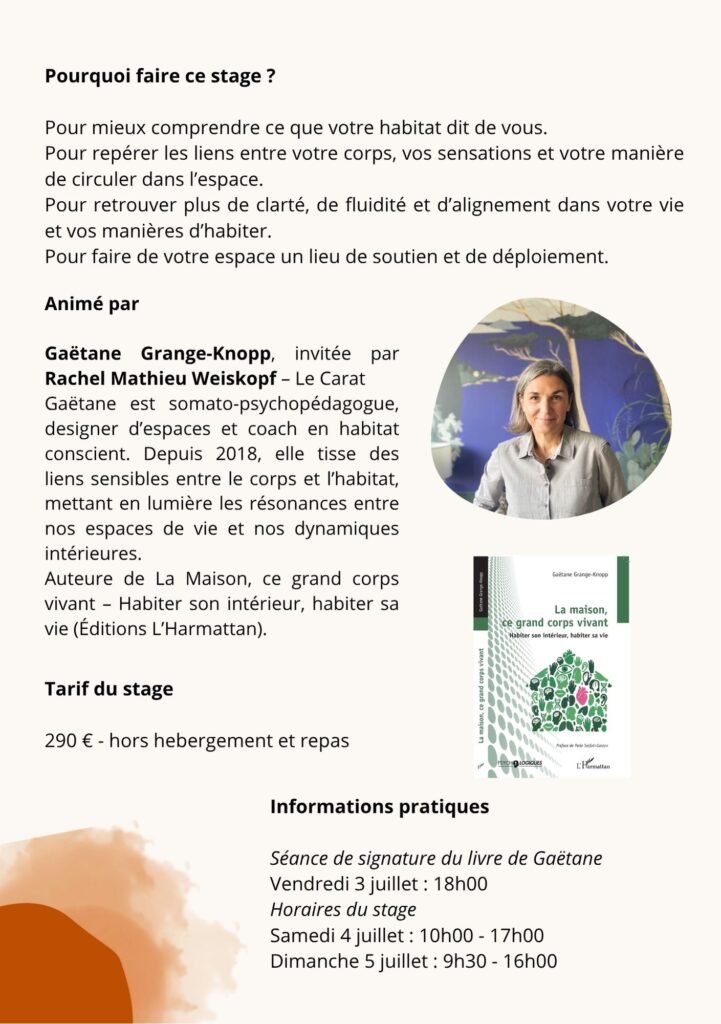 Deux jours pour explorer très concrètement le lien entre corps et habitat.