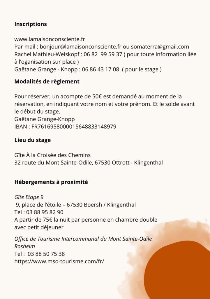📍 Le stage se déroulera en Alsace, au gîte La Croisée des Chemins, au pied du Mont Sainte-Odile